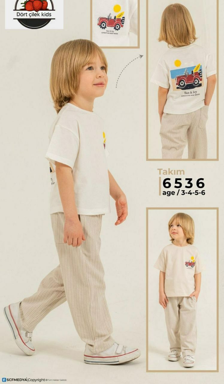Set İçeriği Sırt Baskılı Tişört + Çizgili Uzun Pantolon.