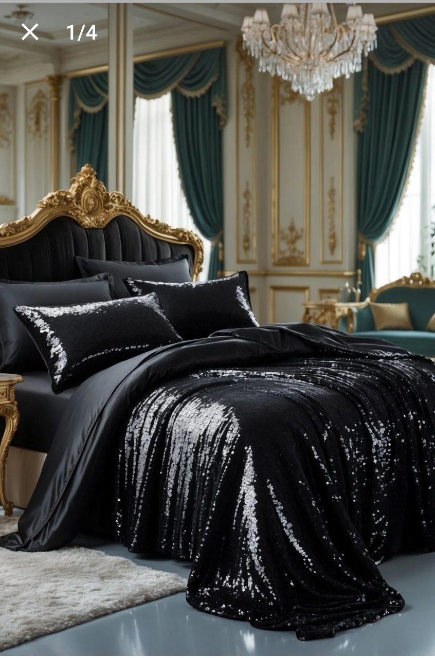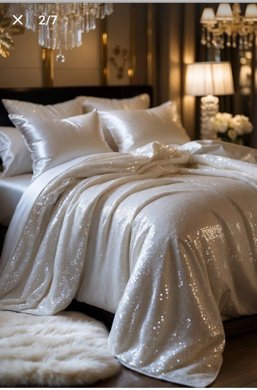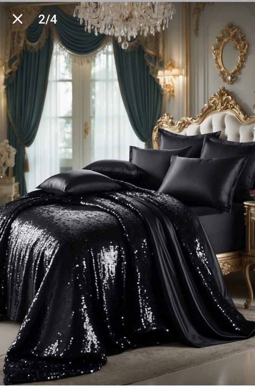1 Adet Payetli & Saten Astarlı Yatak Örtüsü: (250x260 cm) - Ağır ve dökümlü duruş.
